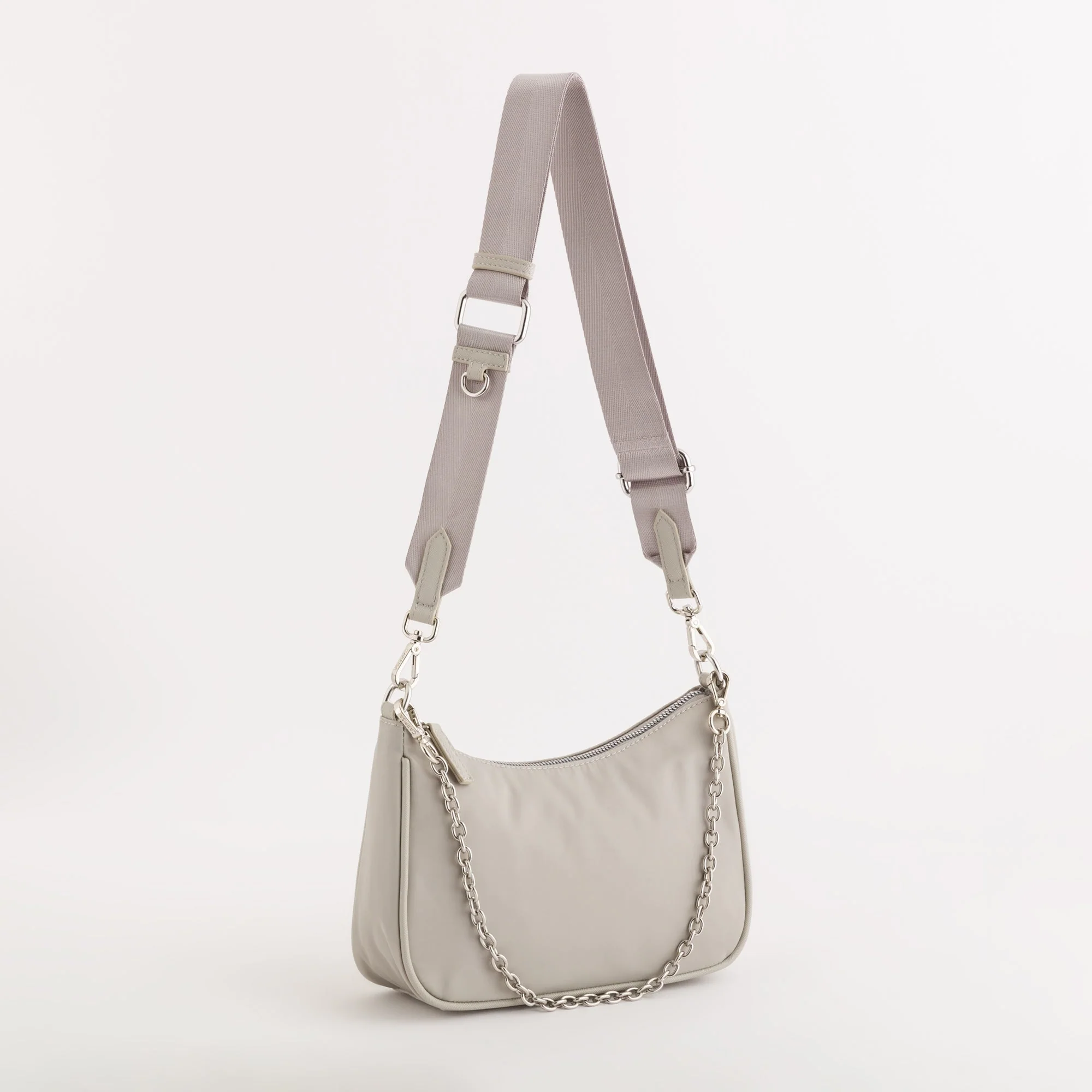 Baguette da donna della linea Trevis by Carpisa in nylon tinta unita. La borsa, con manico a catena o/e tracolla removibile, si chiude con zip centrale e presenta scomparti interni, che tengono in ordine le tue cose.