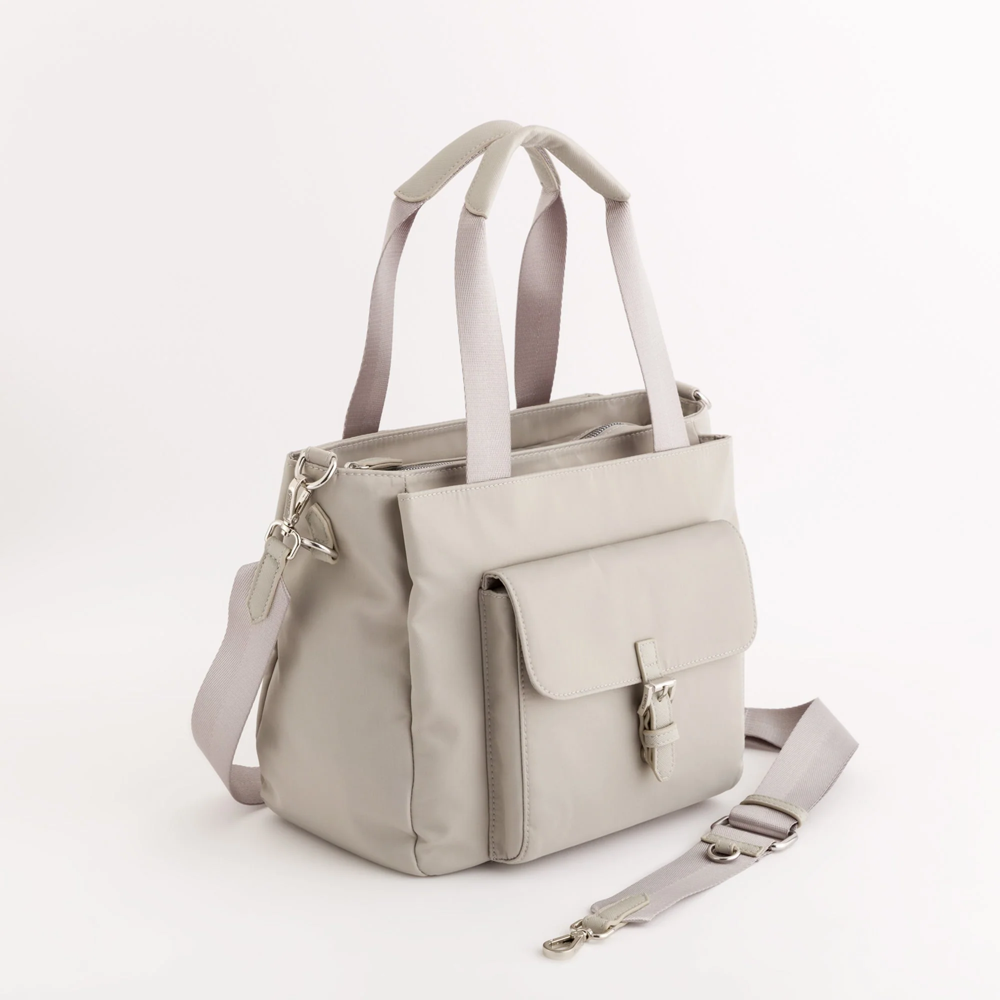 Shopping a mano della linea Trevis by Carpisa realizzata in nylon tinta unita. Il modello presenta due manici, una tracolla regolabile e removibile e tante tasche interne ed esterne che la rendono estremamente comoda per ogni momento della giornata.